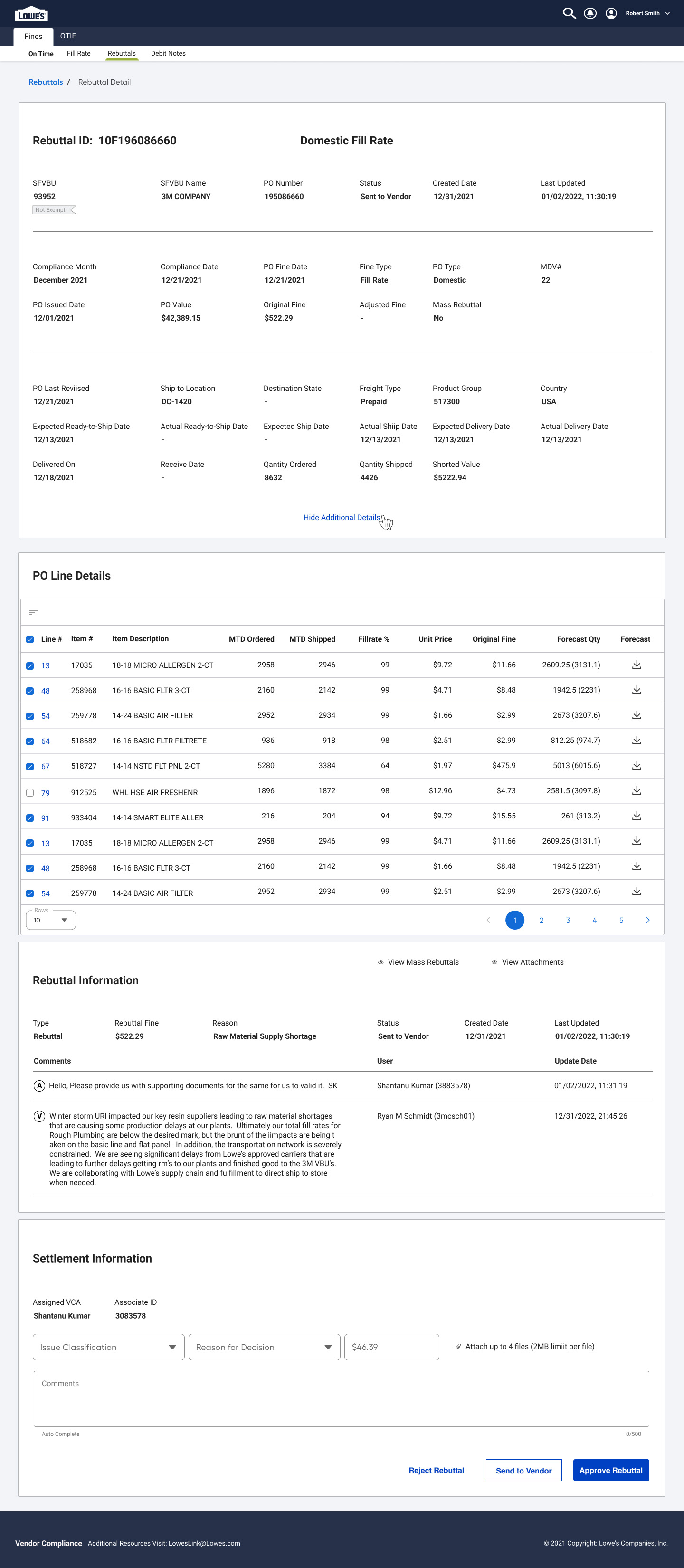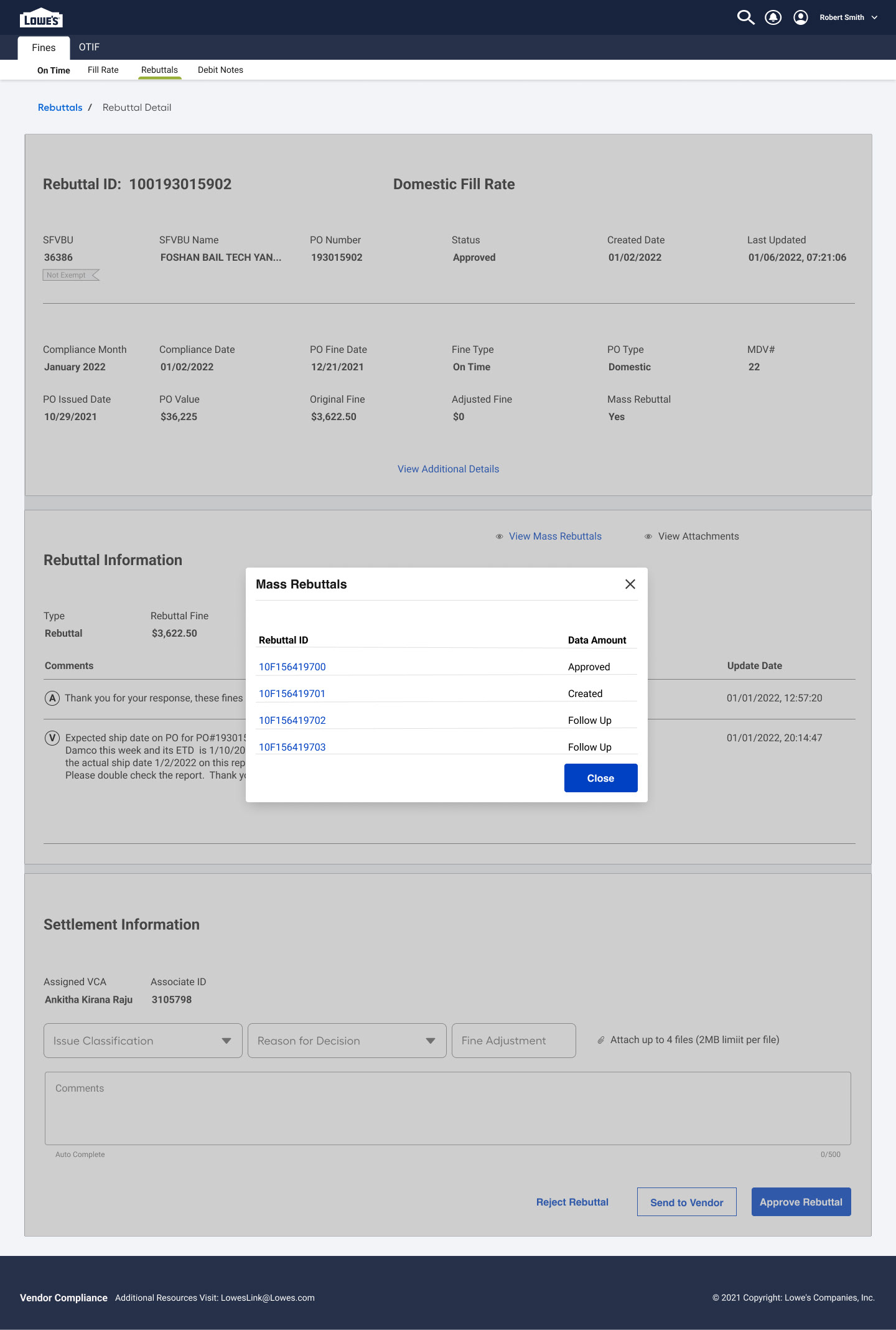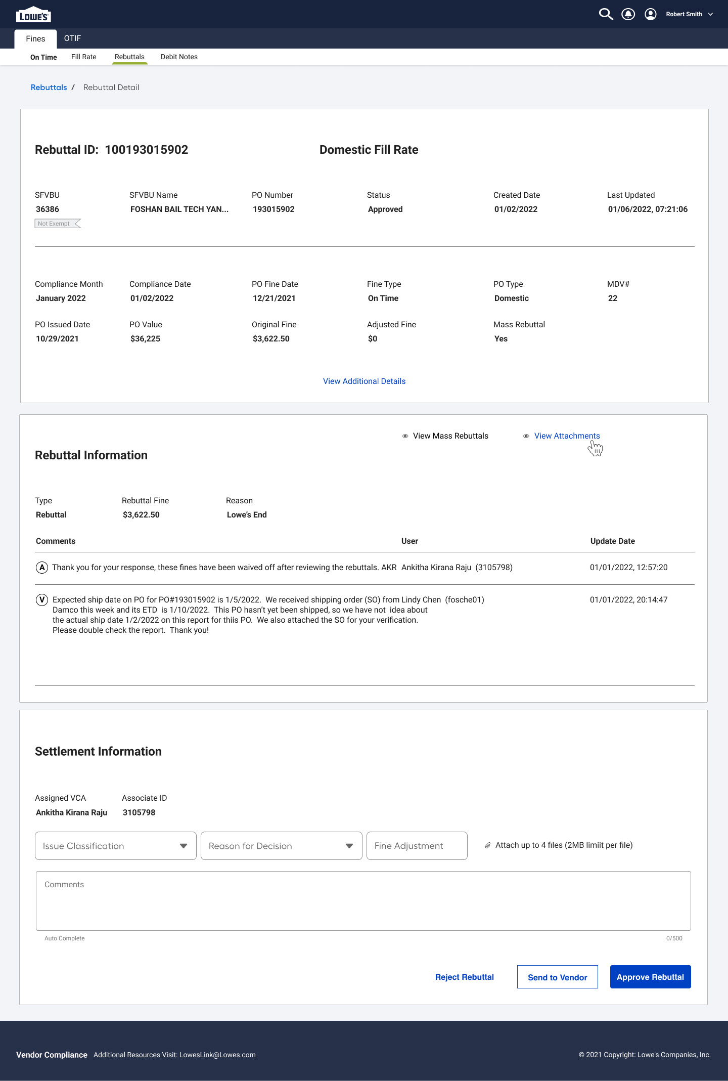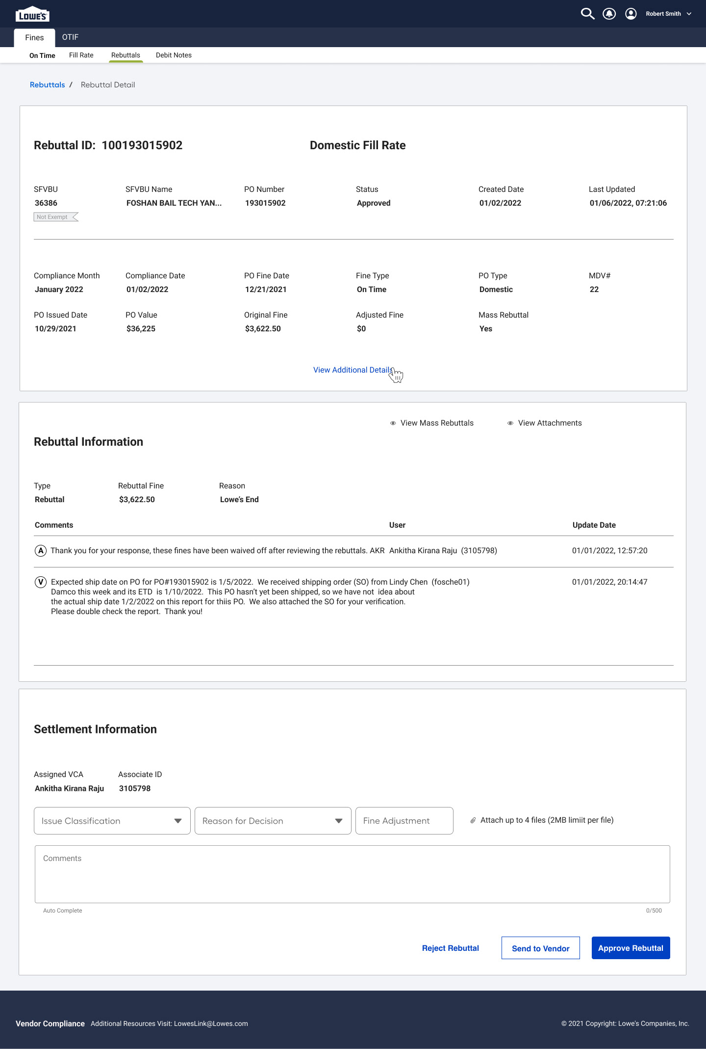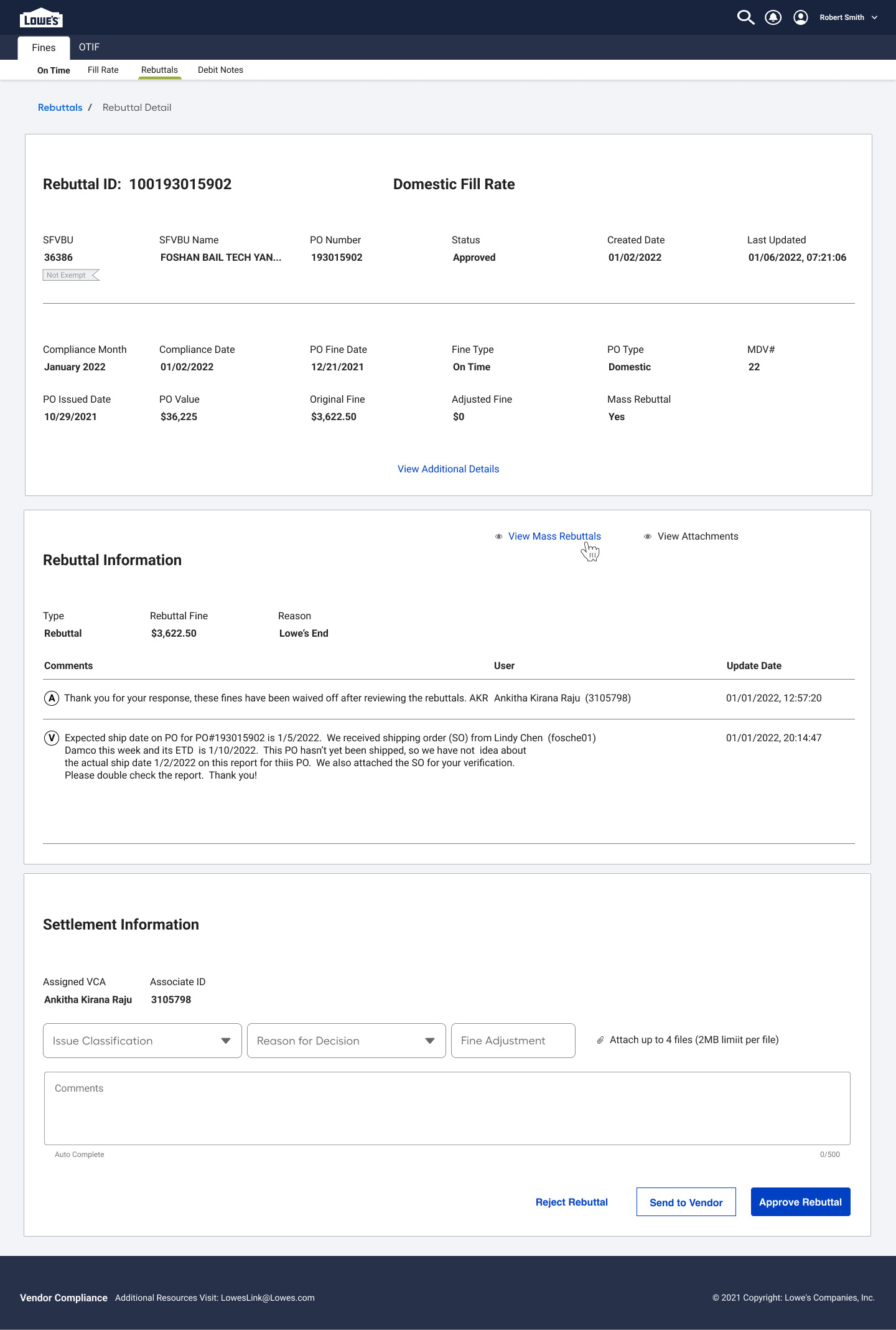 Action Buttons Enable vendors to resubmit, withdraw, or escalate a rebuttal, depending on the outcome of the review.
