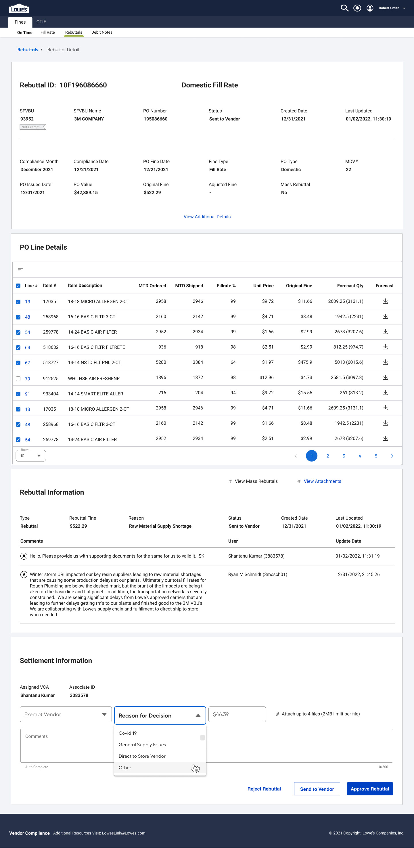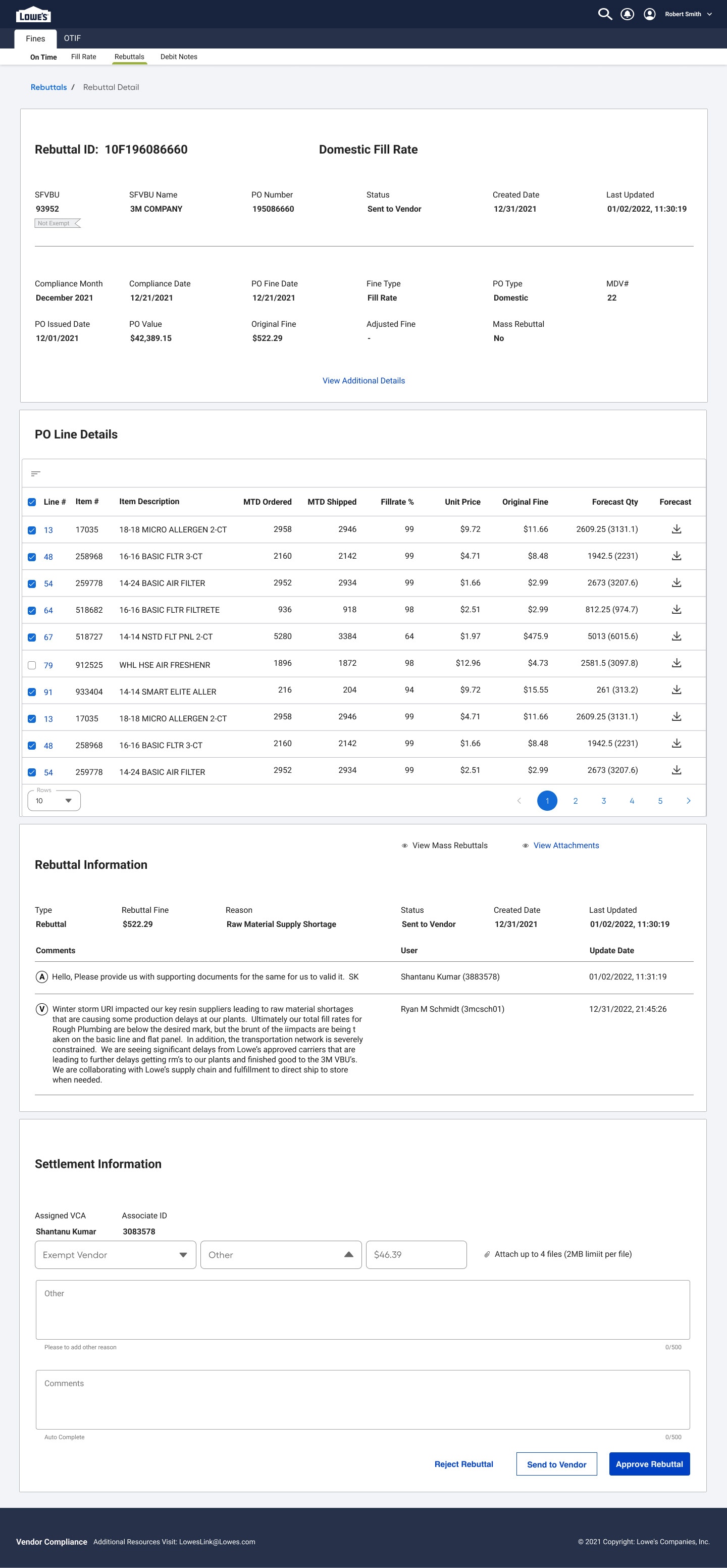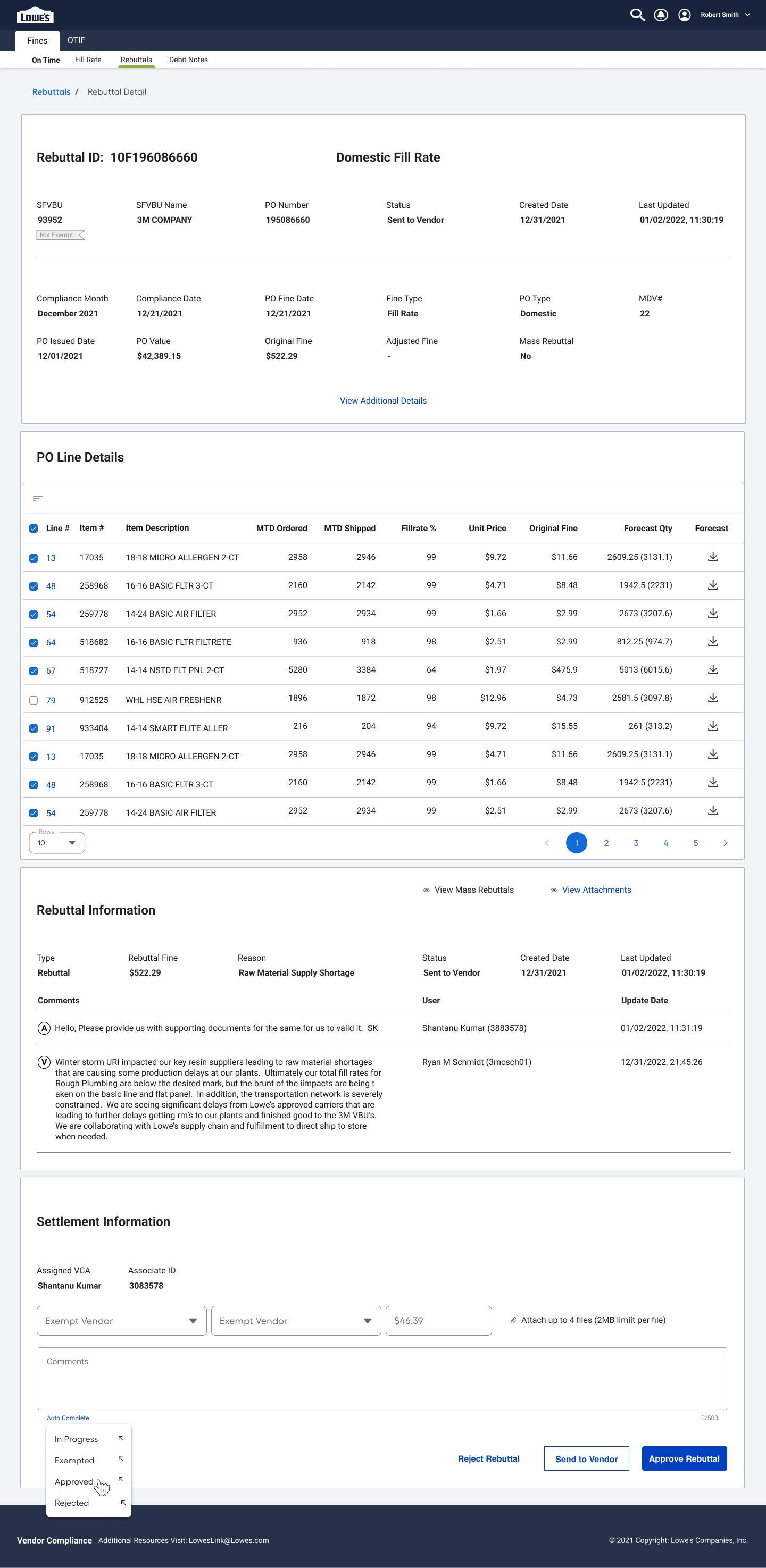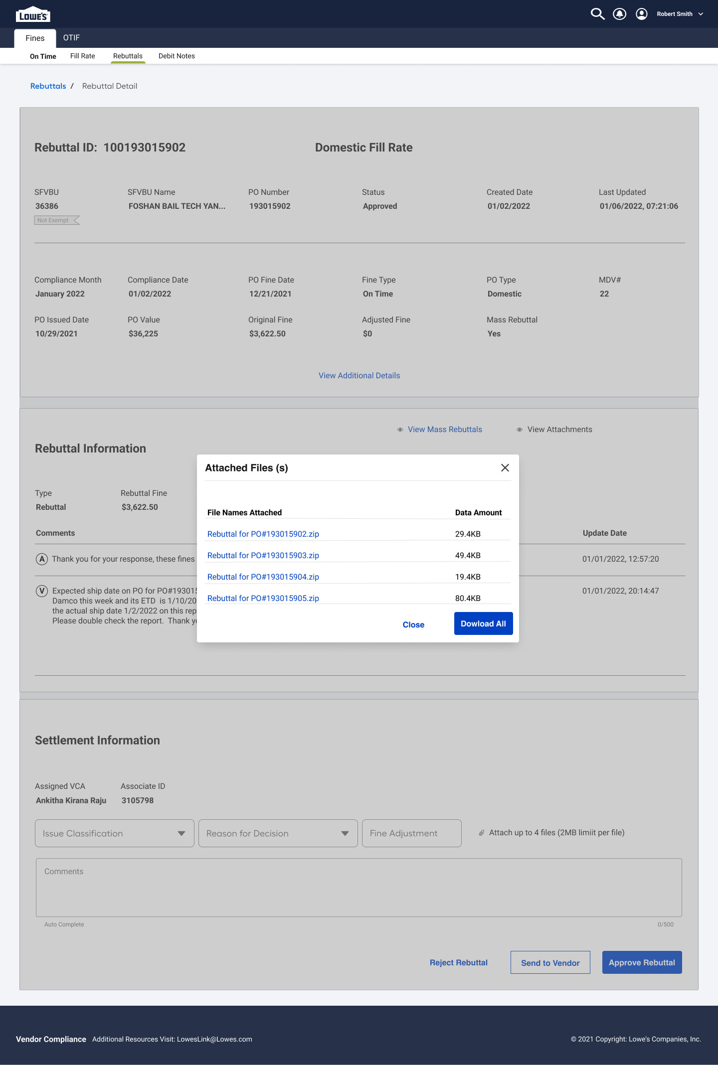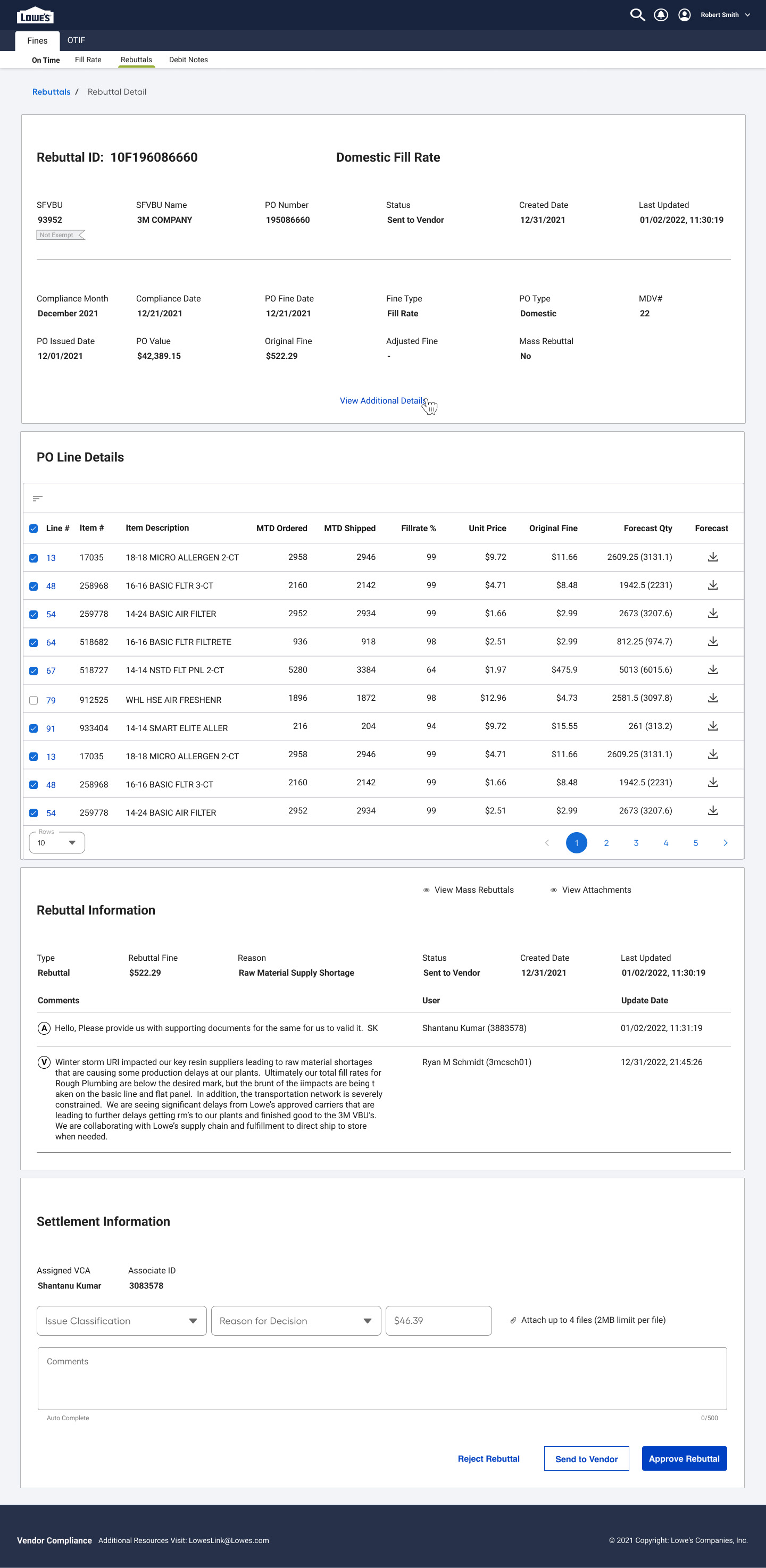 Action Buttons Enable vendors to resubmit, withdraw, or escalate a rebuttal, depending on the outcome of the review.